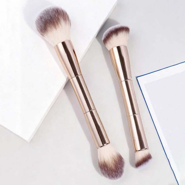 Elevate your makeup game with this 2-piece dual-head professional makeup brush set. Designed for flawless application, this set includes a powder brush and a blush brush, ensuring you can create a smooth, radiant finish every time. Whether you’re applying your daily makeup or preparing for a night out, these brushes help you achieve a polished look with ease and precision.