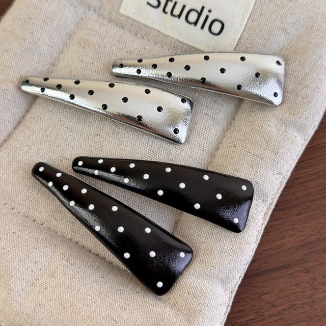 Chic Silver Leather Hair Clips with Polka Dots – Stylish Barrettes