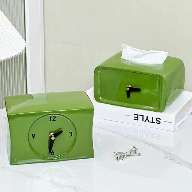 Creative Ceramic Clock Tissue Box for Living Room and Coffee Table Decor
