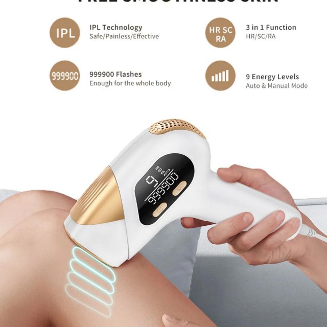 Say goodbye to unwanted hair and hello to silky-smooth skin with this advanced IPL Laser Hair Removal Device. Designed for use on the body, face, bikini area, legs, arms, and underarms, this device uses intense pulsed light technology to target hair follicles directly, breaking the cycle of hair regrowth. With 9 adjustable energy levels and up to 999,900 flashes, it offers a gentle yet powerful solution for long-term hair removal from the comfort of your own home.