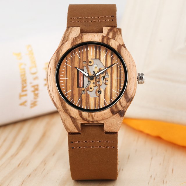 The hollow dial design offers a glimpse into the inner workings of the watch while maintaining a chic appearance. Made from high-quality zebra wood, each watch is unique, displaying its distinctive grain pattern. The quartz movement ensures reliable timekeeping, so you’ll always be right on schedule. The soft leather wristband offers comfort and security, designed to fit snugly on your wrist while looking fashionable.