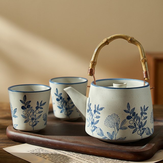 Japanese Retro Ceramic Tea Set with Bamboo Handle
