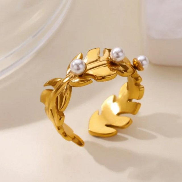 The Stainless Steel 18K Gold Plated Leaf Pearl Open Ring stands out for its distinctive, fashionable design and premium materials. The combination of geometric elements and delicate pearls creates a contemporary look with a hint of natural elegance. Its versatile style means it pairs beautifully with both casual and formal outfits. Plus, the adjustable fit makes it comfortable for daily wear without compromising on style.