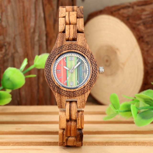 Trendy Zebrawood Quartz Watch for Women – Vintage Round Dial