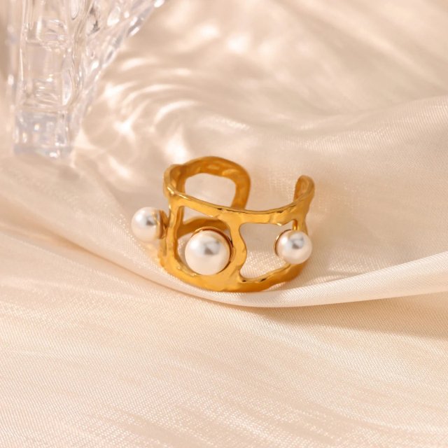 Vintage Imitation Pearl Hollow Geometric Ring for Women – 18K Gold Plated Stainless Steel