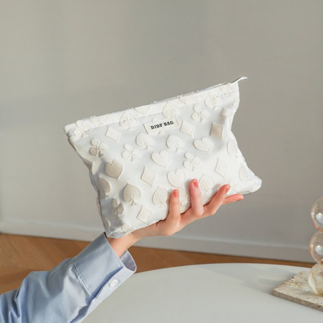 Unlike ordinary cosmetic bags, this one combines modern fashion with practical design. The unique playing card-inspired pattern adds a fun yet sophisticated touch to your everyday style. Its versatile structure means you can use it as a cosmetic pouch, portable toiletry bag, or even a commuter clutch for daily essentials. Durable stitching and a secure zipper ensure it keeps up with your busy lifestyle.
